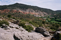 Huetos est un joli petit village tranquille entouré de ses vignes et oliviers. A partir d’ici, le paysage s’adoucit avec une alternance de petits pitons rocheux, de vallons cultivés et de bosquets.